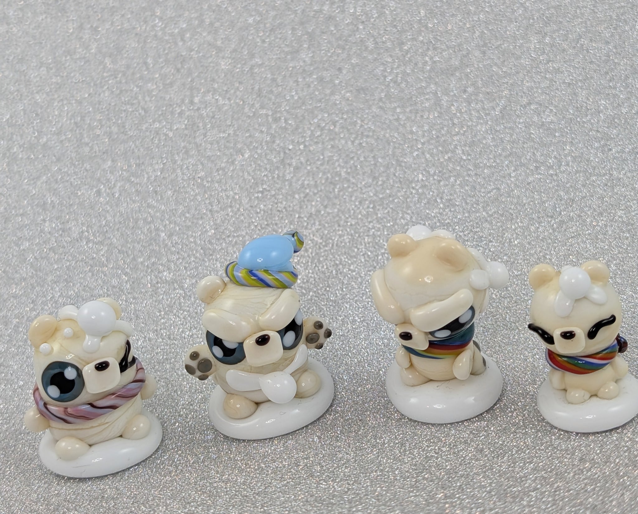 Polar Bears are sculpted in ivory with adorable little black noses and colourful accessories.